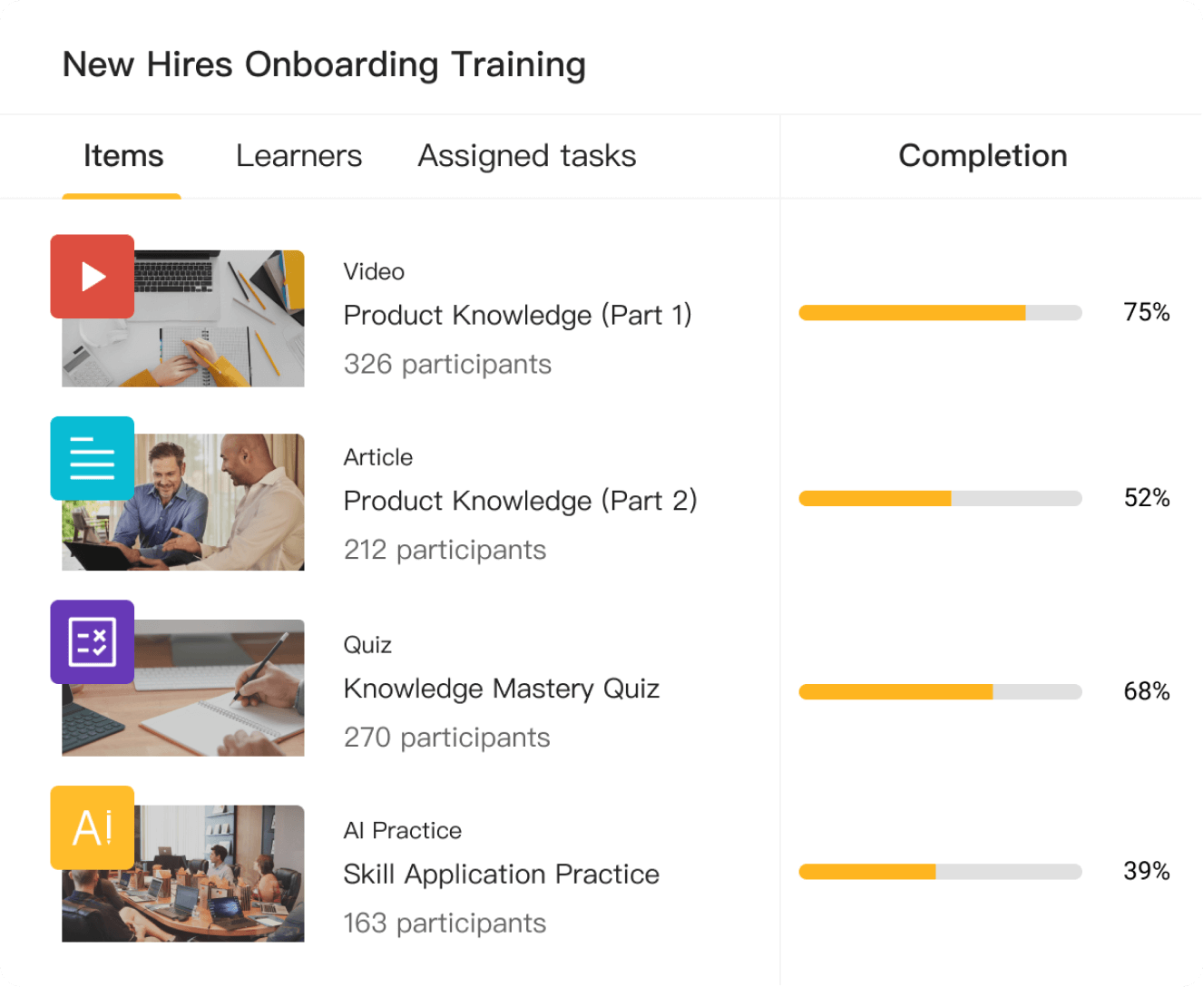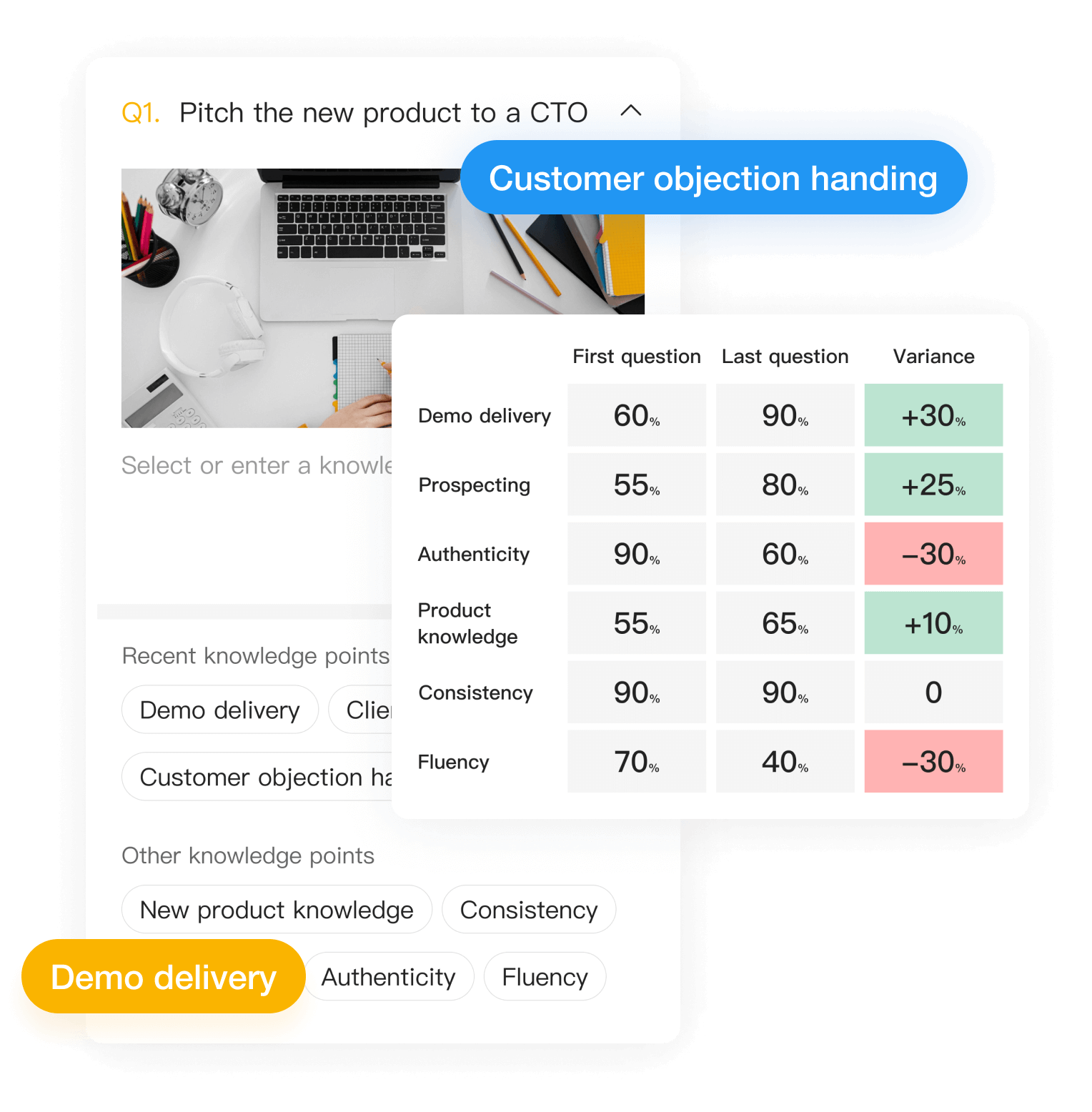 DataMeasure the progress of your sales teams on knowledge and skills with data-driven insights that guide your training goals.